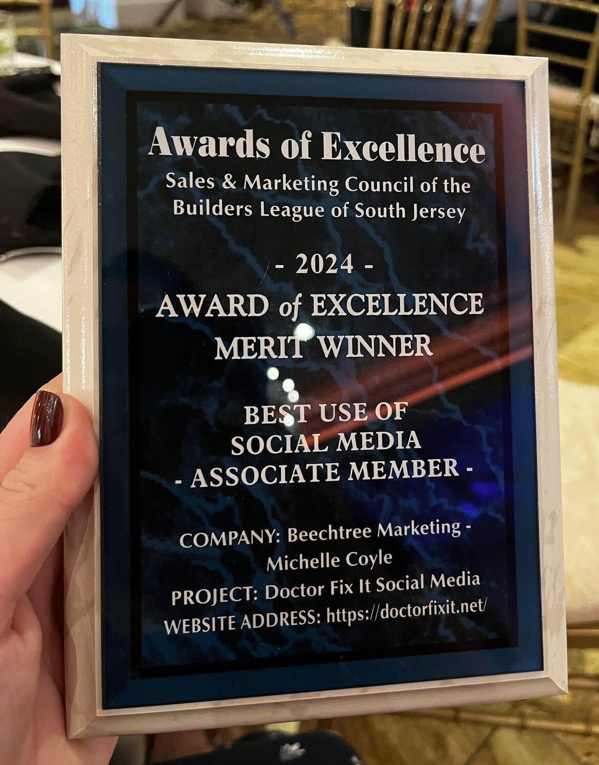 2024 Award Winner for best use of social media from the Builders League of Southern NJ
