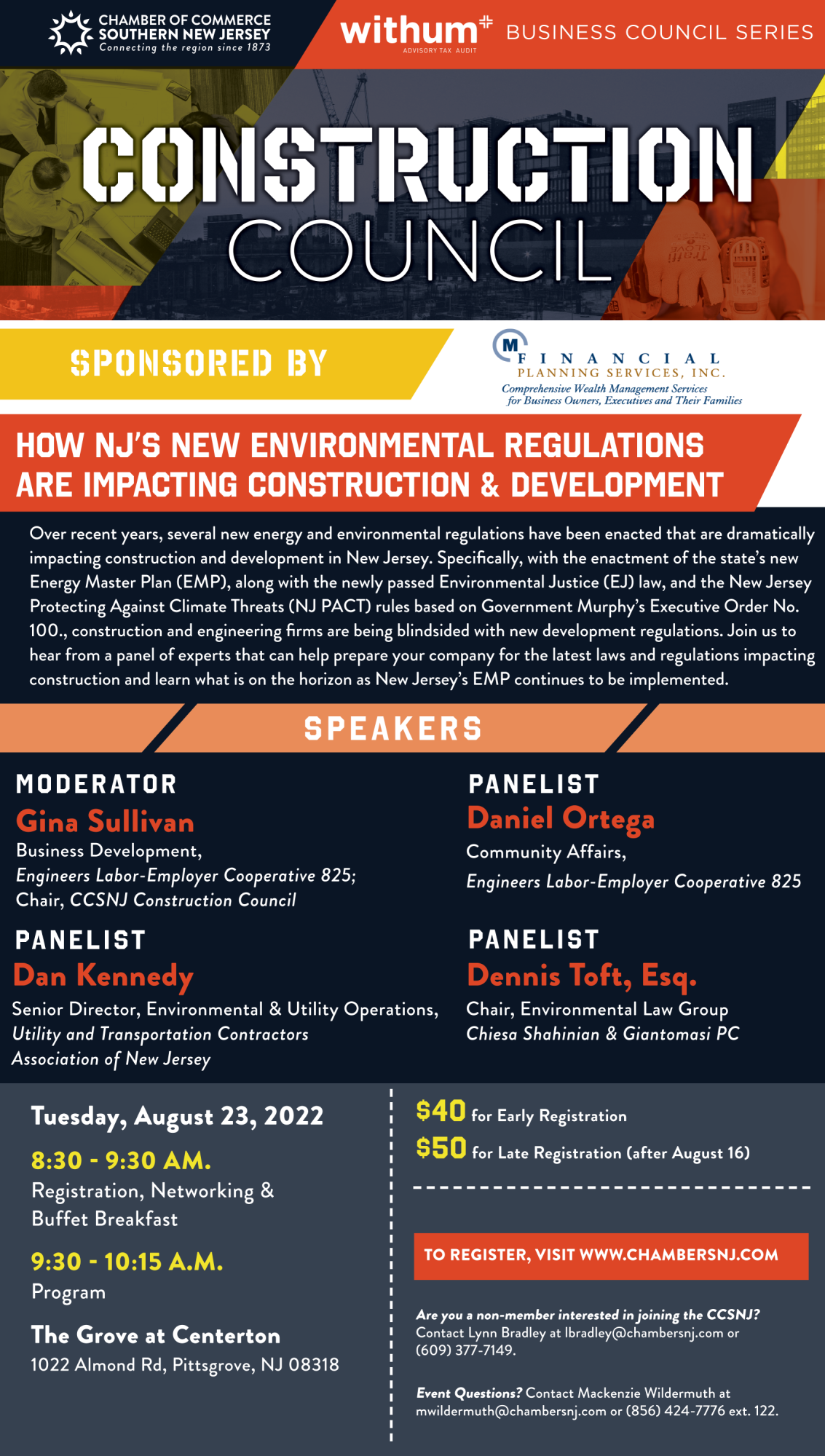 Registration for this Council is limited to construction companies & engineering firms. If you are interested in registering for this event, please email Christina Renna at crenna@chambersnj.com.