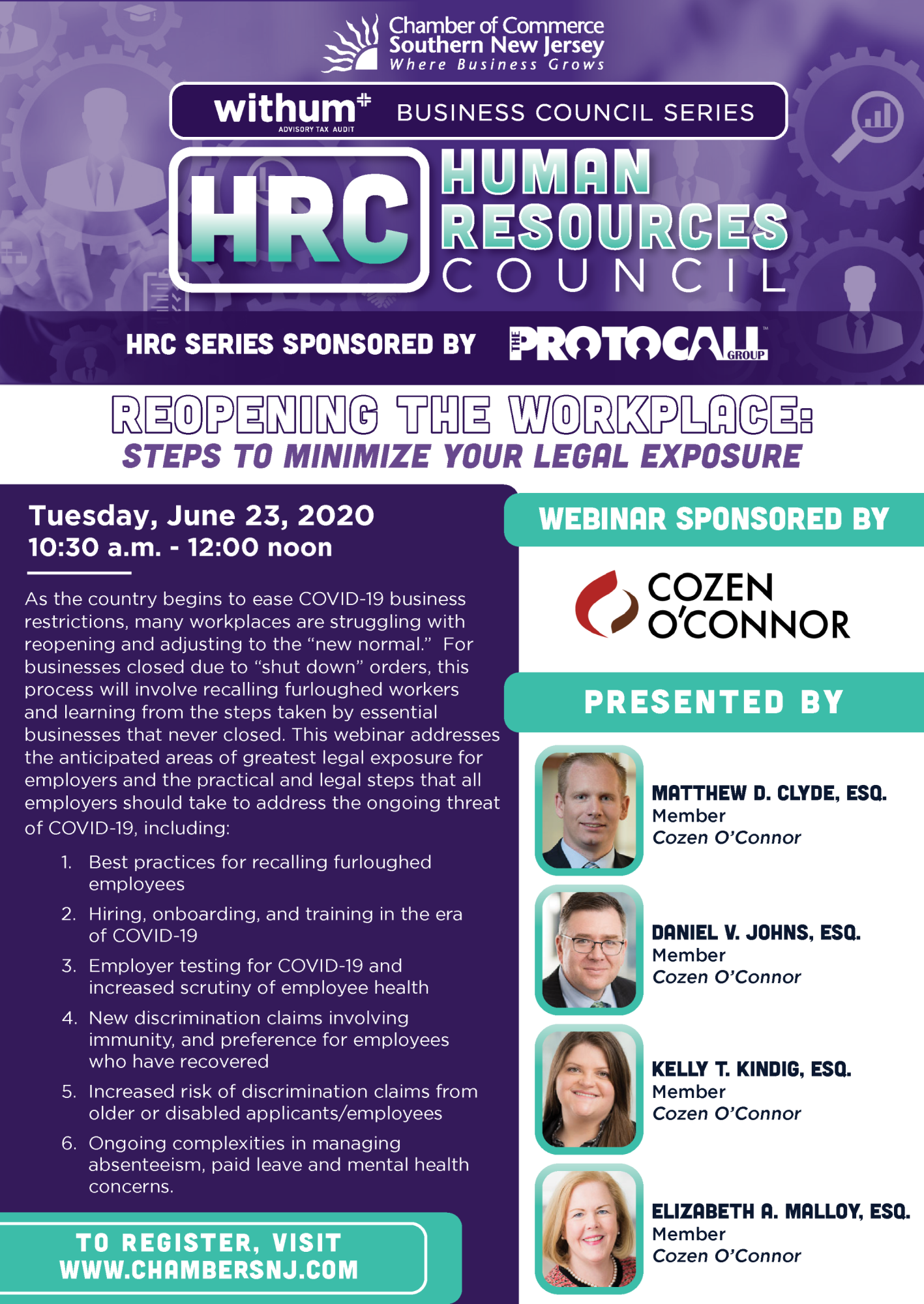 As the country begins to ease COVID-19 business restrictions, many workplaces are struggling with reopening and adjusting to the “new normal.” For businesses closed due to “shut down” orders, this process will involve recalling furloughed workers and learning from the steps taken by essential businesses that never closed. This webinar addresses the anticipated areas of greatest legal exposure for employers and the practical and legal steps that all employers should take to address the ongoing threat of COVID-19, including: