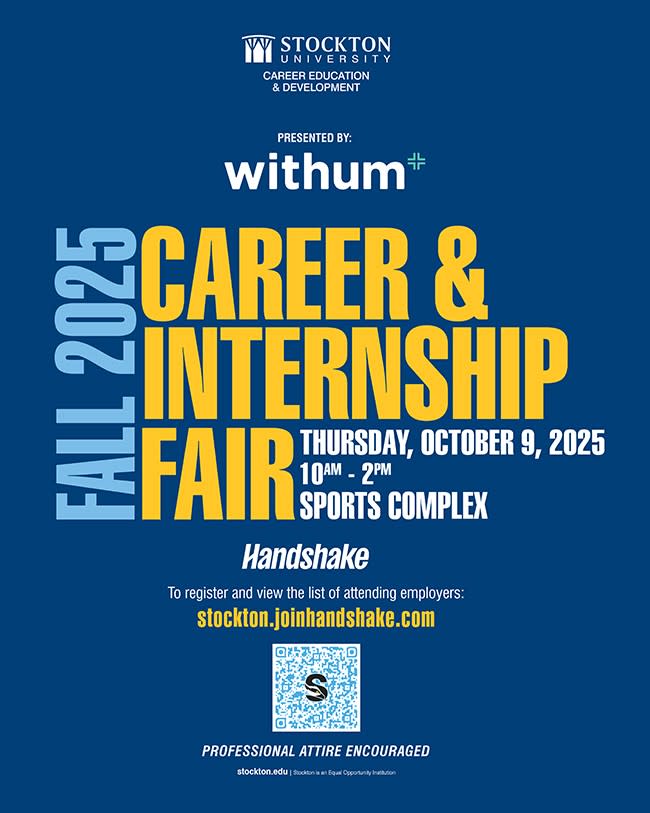 Join us on Thursday, October 9 from 10:00 A.M. to 2:00 P.M. in the Sports Center at Stockton University to showcase your company and meet with some of the best and brightest students and alumni New Jersey has to offer.