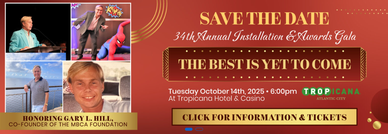 The MBCA Foundation will celebrate its 34th Anniversary with its annual Officers Installation and Awards Gala — this year titled The Best is Yet to Come! — 6 p.m. Tuesday, Oct. 14, 2025, at Tropicana Atlantic City honoring MBCA and Schultz-Hill Foundation Co-Founder, Atlantic City Municipal Utilities Authority Chairman and Community Activist Gary Hill.