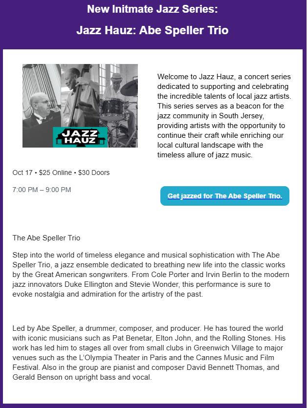 New Intimate Jazz Series: Jazz Hauz: Abe Speller Trio