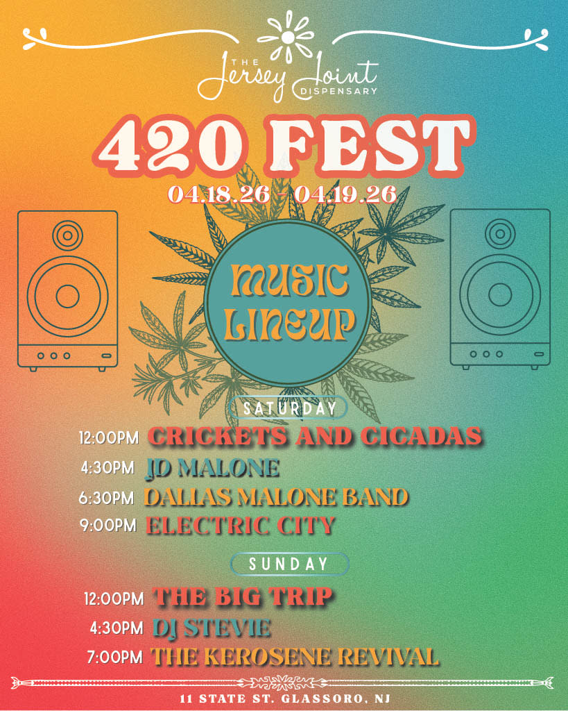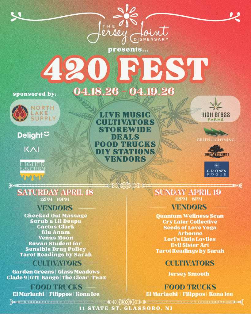 The Jersey Joint Dispensary is very excited to invite you to join us for our upcoming 420 Festival, a two-day celebration of community, culture, and cannabis. Taking place on Saturday, April 18 from 12pm-8-10pm and Sunday, April 19 from 12pm-8pm at 11 State Street, Glassboro, New Jersey.