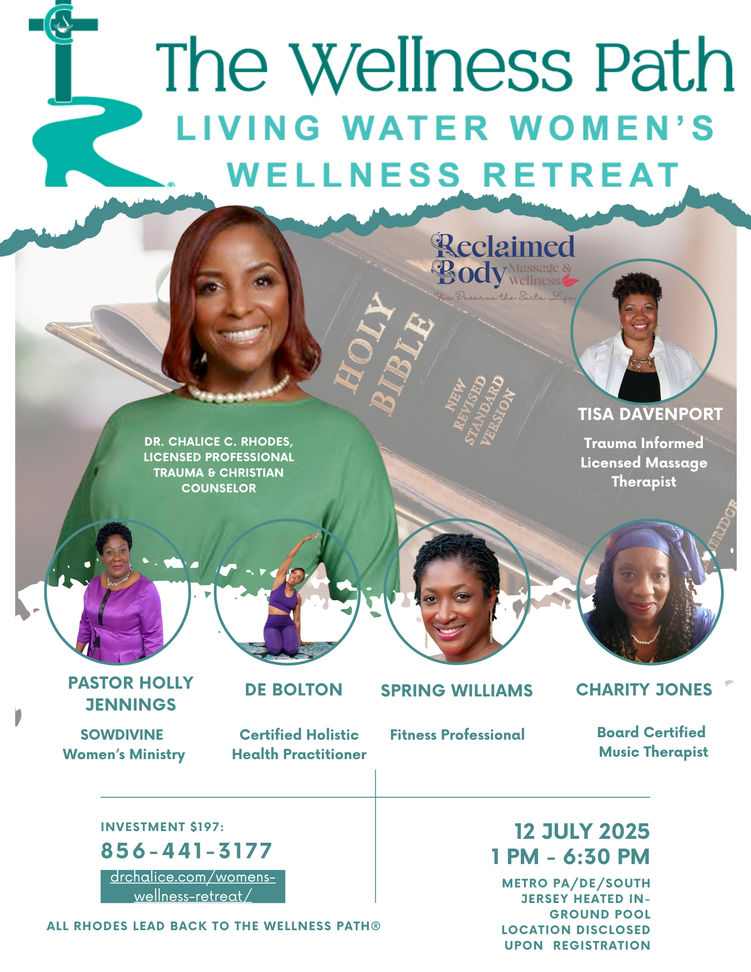 📍Heated In-Ground Pool | South Jersey (exact location shared upon registration) Led by Dr. Chalice C. Rhodes—Licensed Professional Trauma & Christian Counselor and Amazon #1 Top New Release Author