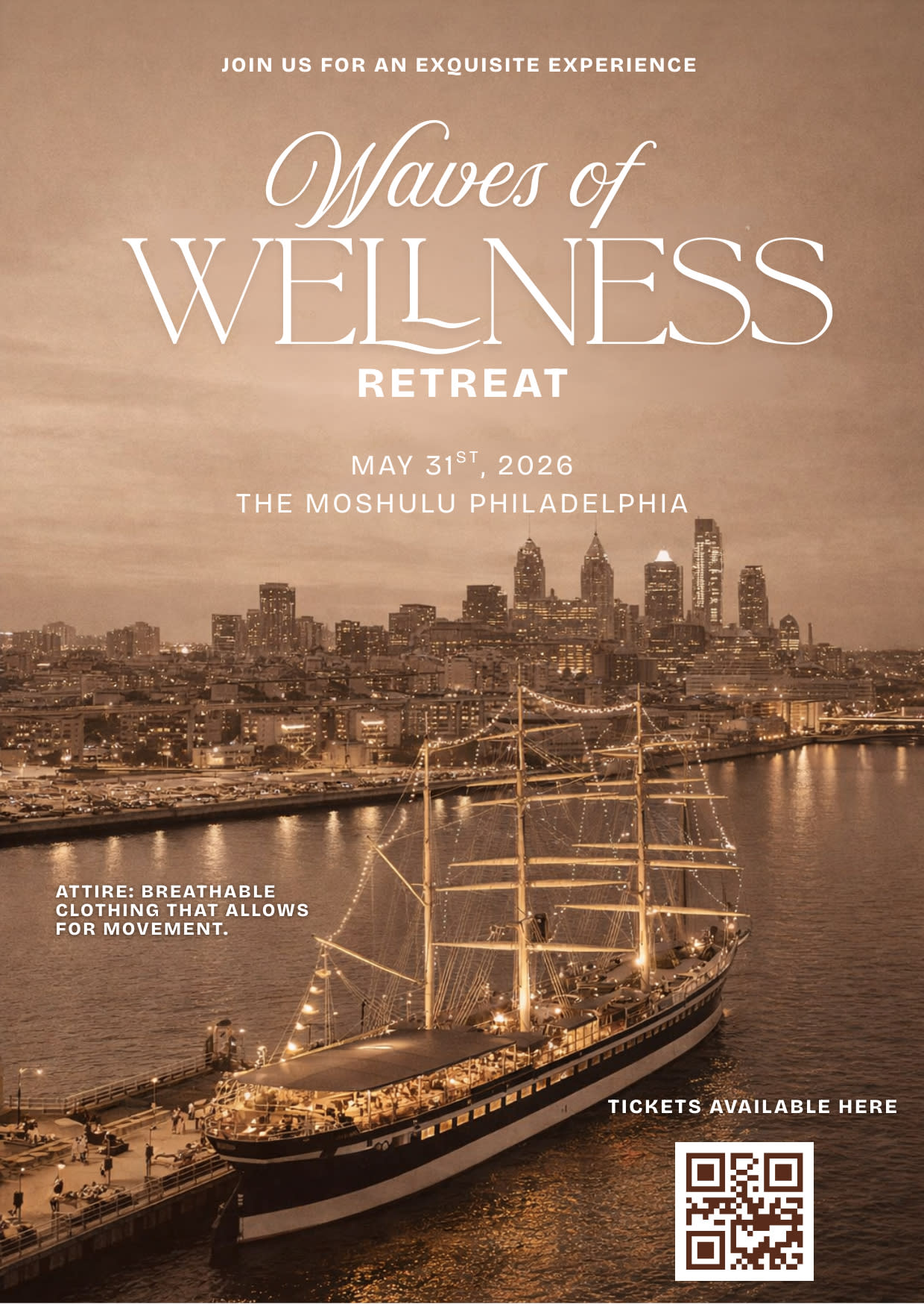 Waves of Wellness is a curated wellness experience for women, hosted aboard the historic Moshulu on Philadelphia’s waterfront. This alcohol-free afternoon invites attendees to slow down through gentle yoga, sound healing, laughter-based activities, and a shared meal designed to foster connection. Thoughtfully crafted, Waves of Wellness offers space to rest, reflect, and reconnect on the water, with community.