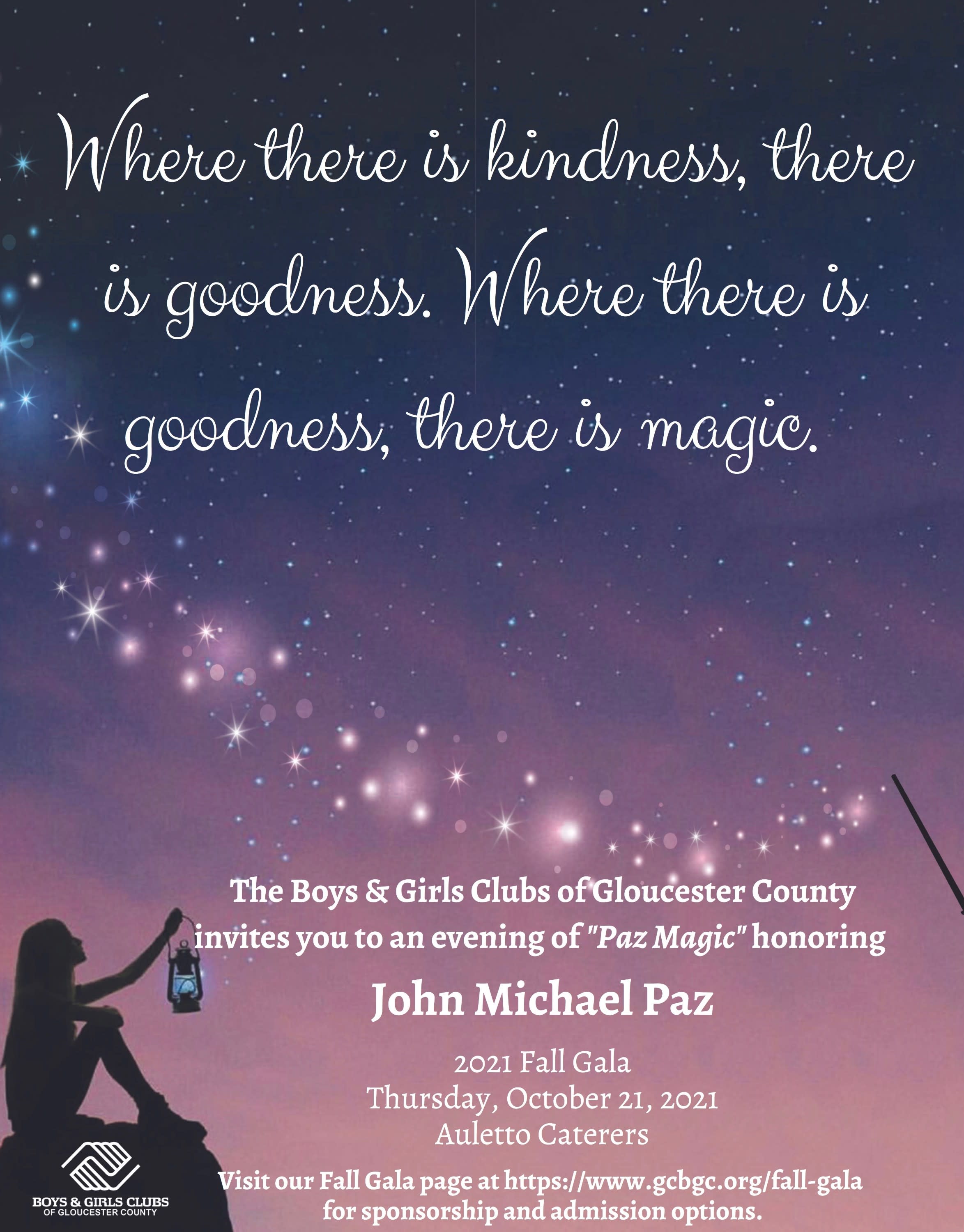 Glassboro, NJ, September 1, 2021 – The Boys & Girls Clubs of Gloucester County is holding its Annual Fall Gala fundraising event on Thursday, October 21, 2021. The theme for the night will be “Paz Magic” as they honor the innovative entrepreneur and philanthropist John Michael Paz.