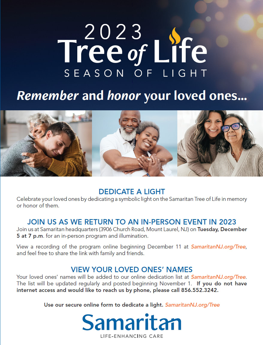 To donate, dedicate a symbolic light or for more information about Samaritan’s 2023 Tree of Life ceremony, visit: SamaritanNJ.org/Tree.
