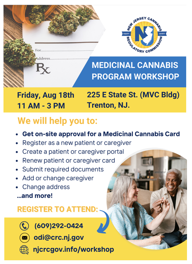 New Jersey Cannabis Regulatory Commission Hosting Medicinal Cannabis Program Workshop Quick Links CCSNJ RESOURCE CENTER REOPENING RESOURCES COVID-19 RESOURCES LEGISLATIVE UPDATES CCSNJ NEWS & PRESS BUSINESS DIRECTORY CCSNJ EVENTS Back to CCSNJ Resource Center Updates New Jersey Cannabis Regulatory Commission Hosting Medicinal Cannabis Program Workshop By Cannabis Regulatory Commission 8/16/2023 Images × Share × Email Facebook LinkedIn X Pinterest Powered By GrowthZone