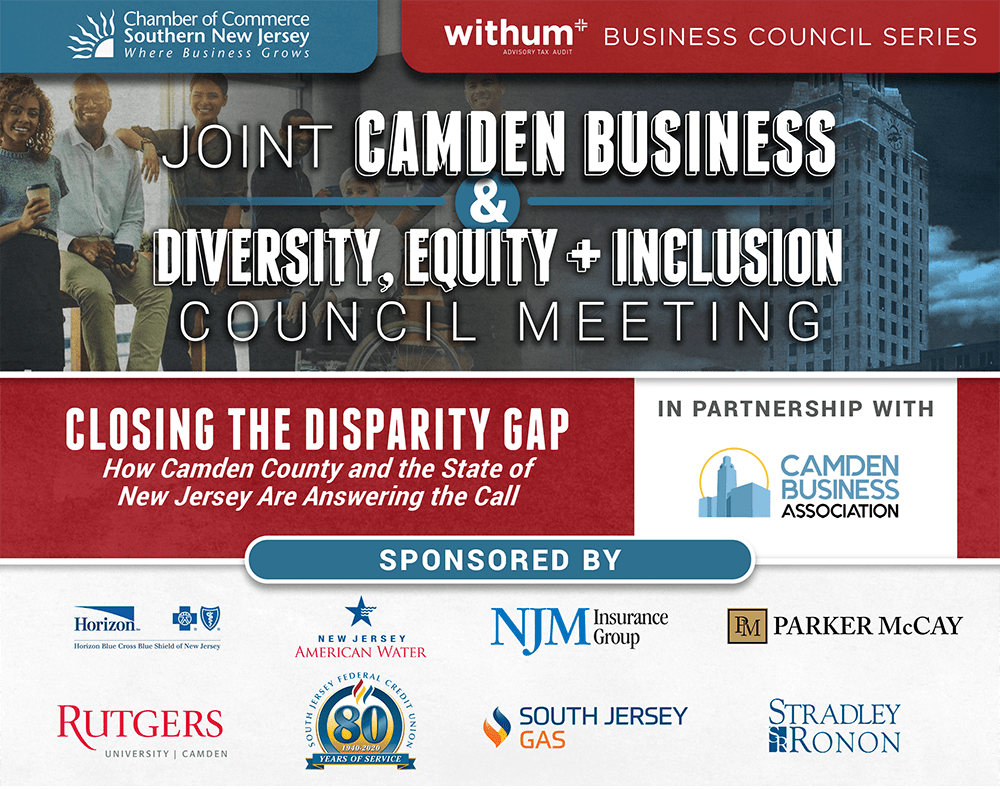 Join us for a discussion on how the New Jersey Office of Diversity and Inclusion and the County of Camden are working to close racial and gender disparity gaps. Ms. Agudosi will provide an update on NJ’s Disparity in State Procurement Commission, which serves to assess the procurement of goods and services by State and local government, and how her office is working to ensure access and equal opportunity for minority, disabled, veteran and women-owned businesses to participate in the state procurement process. Mayor Moran and Freeholder Young will share the steps Camden City and Camden County has taken locally to close the disparity gap.