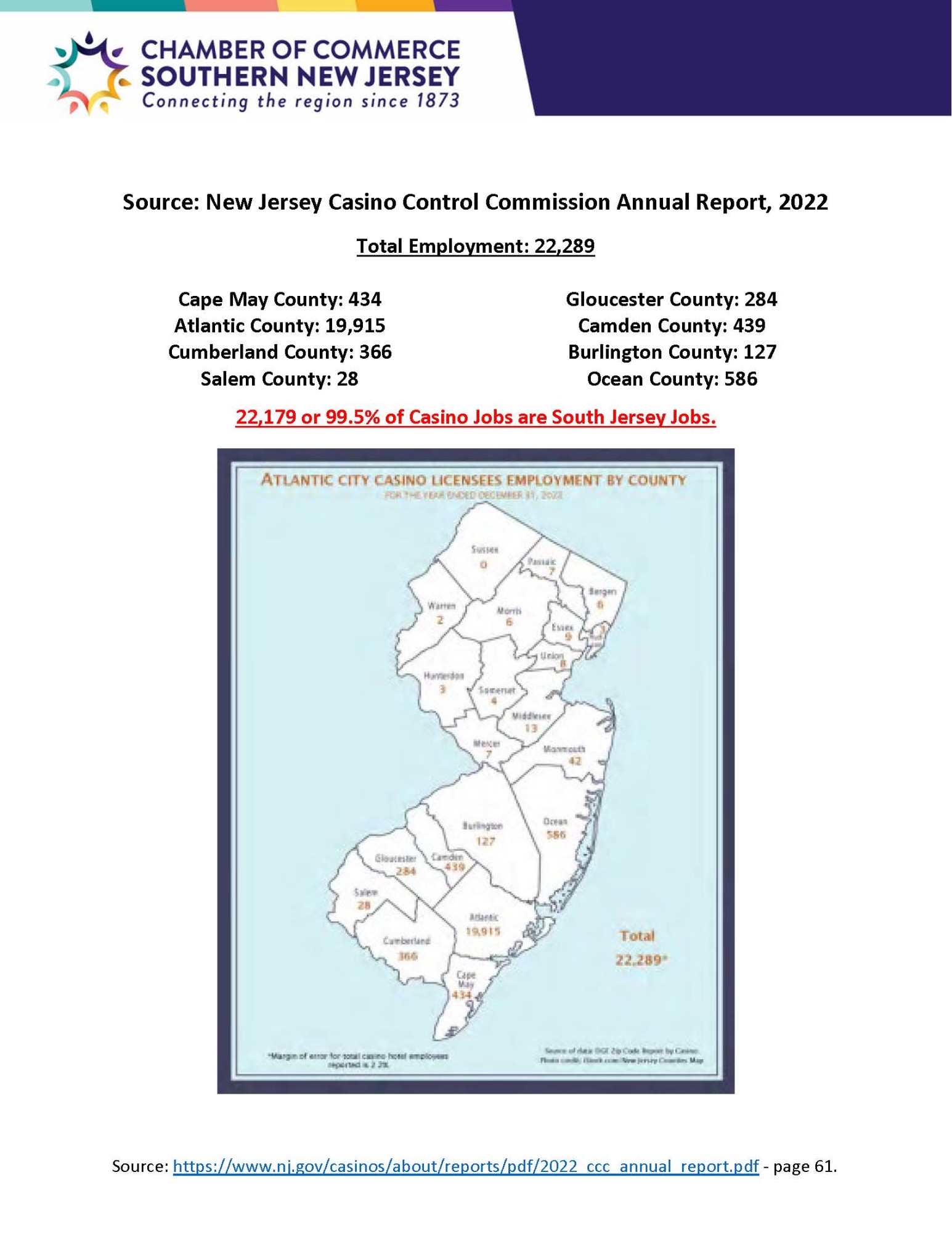 Position Papers CATEGORIES COVID-19 VIEW ALL DEIB VIEW ALL ECONOMIC DEVELOPMENT VIEW ALL ENERGY VIEW ALL ENVIRONMENT VIEW ALL HEALTHCARE VIEW ALL LABOR + WORKFORCE VIEW ALL STATE BUDGET VIEW ALL TAXATION VIEW ALL TRANSPORTATION + INFRASTRUCTURE VIEW ALL Back to Position Papers Addendum to S-1493 Testimony: NJCCC Casino Employment Data for South Jersey By Christina Renna 1/30/2024 Images × Share × Email Facebook LinkedIn X Pinterest Powered By GrowthZone Your Feedback is Important to Us! For any Government-related comments, questions or suggestions please contact: Hilary Chebra Manager, Government Affairs, CCSNJ SUBMIT FEEDBACK